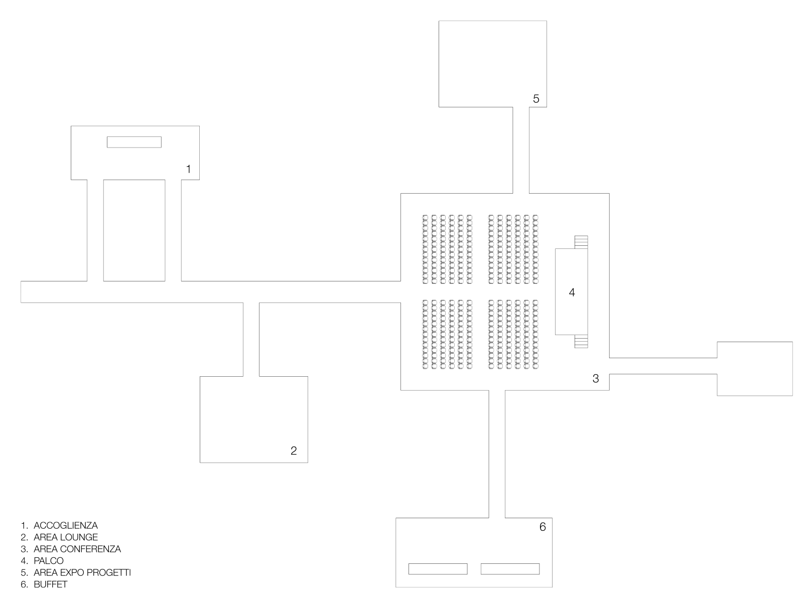 Il Palazzo del Lavoro di Nervi è il grandioso scenario della Conferenza annuale dell’Associazione Nazionale Costruttori Edili (ANCE). Il confronto con questo tempio dell’architettura contemporanea, unito ad un budget ridotto, è lo spunto per la creazione di un non-luogo, dichiaratamente ispirato a quello del film Dogville di Lars Von Trier, in cui la scenografia bidimensionale è tracciata soltanto a terra.